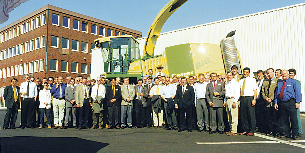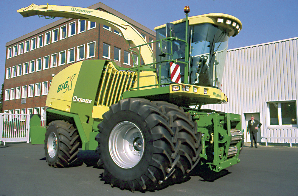20-го числа. Май 2000 г.: официальная презентация первого прототипа кормоуборочного комбайна KRONE под названием BiG X. 540-сильный комбайн стартовал как скоростная версия, 40 км/час на первые тестовые заезды. Несмотря на требование "форма следует за функцией" (функция важнее внешнего вида), ему удалось создать перспективный дизайн, который был соответствующим образом оценен специализированной прессой. 1999 в начале 2000 был выпущен прототип BiG X. Все функции, особенно новая электроника, была постепенно введена в эксплуатацию. 20 числа. в мае 2000 года состоялся выход на рынок.