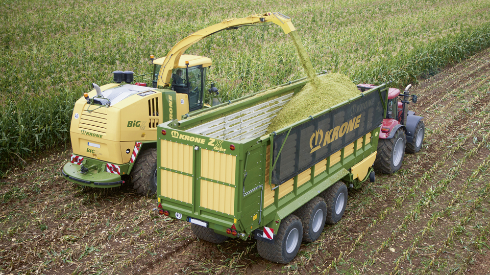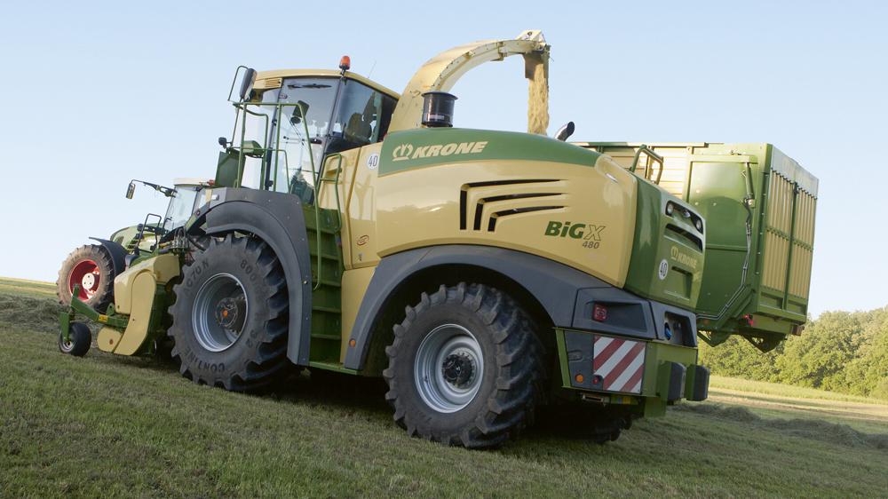 BiG X 1180 дополнил программу выпуска кормоуборочных комбайнов в 2018 году. Увеличение мощности двигателя связано с двигателем Liebherr V12 объемом 24,24 л и мощностью 850 кВт (1156 л.с.). Таким образом, KRONE предлагает самый мощный на сегодняшний день кормоуборочный комбайн в мире, который также имеет практичную концепцию двигателя. Таким образом, это означает, что интервалы техобслуживания масла, фильтров и клапанов требуются только каждые 1000 моточасов работы. В ответ на растущие требования к качеству корма все кормоуборочные комбайны больших серий теперь можно приобрести с более производительной зернодробилкой OptiMaxx.