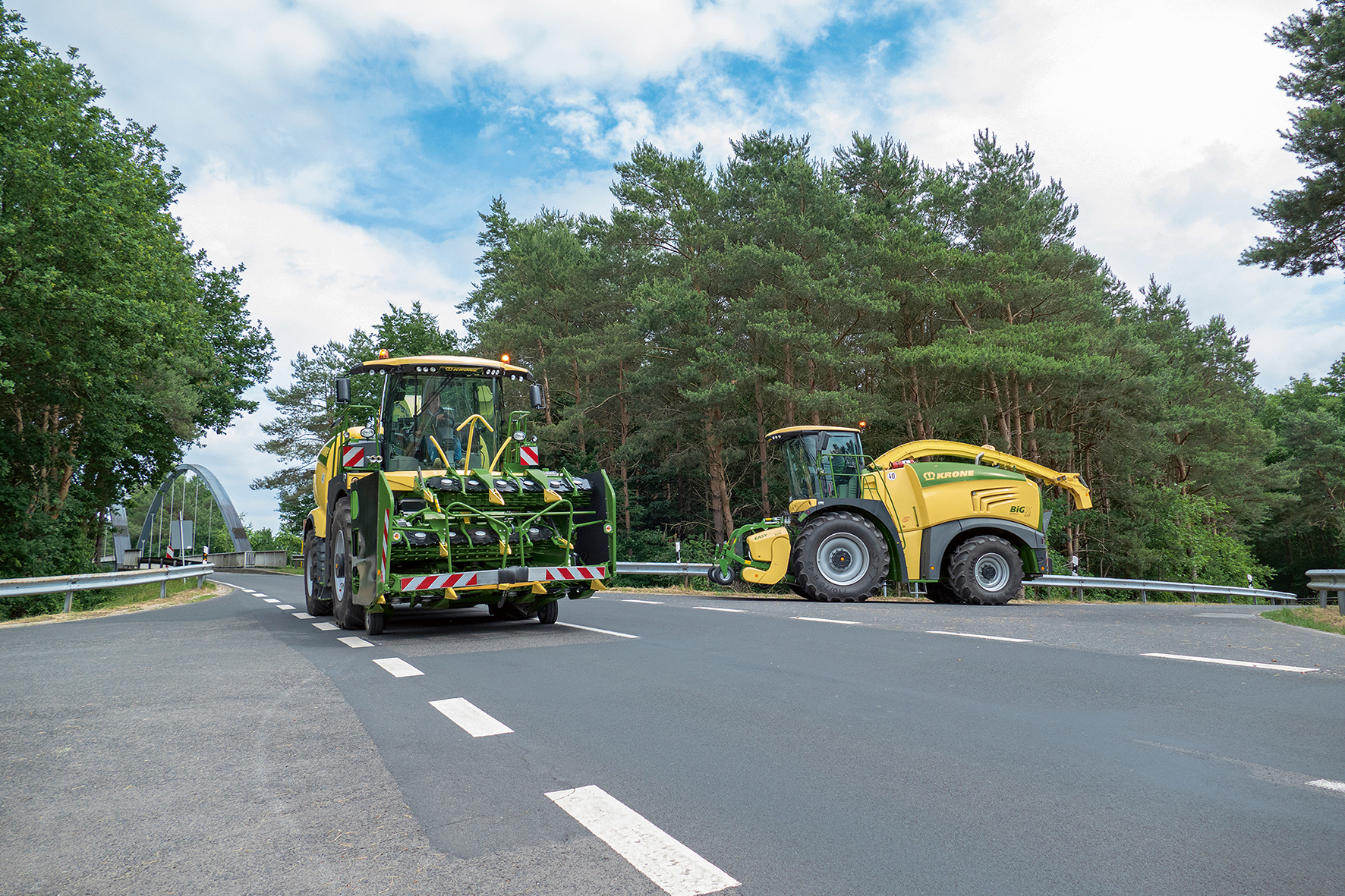 То, что возможно на кормоуборочных комбайнах BiG X 480 - 630 еще с 2013 года, имеется теперь также для моделей BiG X 680 - 1180: с новым вариантом шин 680/80 R38 на передней оси транспортная ширина этих кормоуборочных комбайнов теперь составляет всего 3 м, и допускается их движение по дорогам общего пользования без специального разрешения. Кроме того, в комбинации со встроенной в качестве опции на приставке для уборки кукурузы XCollect транспортной ходовой частью также не превышается допустимая нагрузка на ось 11,5 т. В результате машина BiG X обеспечивает не только высокий комфорт движения по дороге, но и бережную обработку почвы в полевых условиях за счет большой площади контакта.