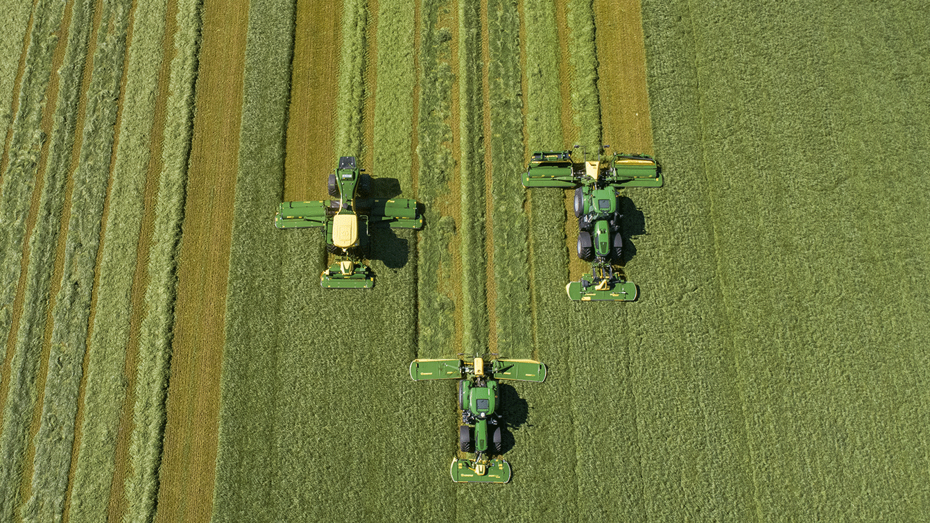 На разворотной полосе посредством нажатия кнопки поднимаются все три косилки и снова начинают работать. Фронтальная гидравлическая система трактора может обслуживаться посредством распределительной гидрокоробки задних косилок. На клиньях и оставшихся полосах у Вас имеется возможность работать с одной или двумя косилками. Структура кормовой массы скошенной культуры остается без изменений. EasyCut B 1000 CV демонстрирует свои умения не только на больших площадях, но и на небольших делянках выполняет свою работу чисто и обеспечивает высокое качество заготовки корма.