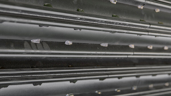 Работающие навстречу друг к другу вальцы входят в зацепление между собой и выполняют сдавливающее движение на собранную культуру. При этом, профили M оставляют достаточно свободного пространства для корма. Результат: равномерное, интенсивное плющение для гомогенных процессов сушки без потерь от раструшивания – идеально, например, для заготовки люцерны.