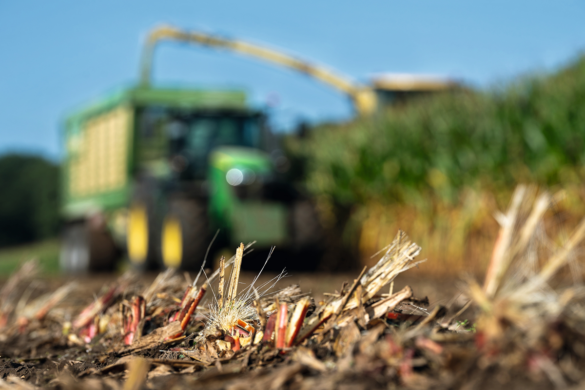 В качестве субстрата для биогазовых установок кукуруза измельчается по-возможности мелко. На практике в зависимости от влажности заготавливаемой культуры обеспечивается длина измельчения от 4 до 7 мм. Так как, чем короче длина измельчения, тем больше площадь воздействия для производящих метан бактерий в ферментере и тем самым выход газа. Для сбора урожая кукурузы на биогаз кормоуборочные комбайны KRONE оснащаются барабаном измельчителя Biogas с 40 ножами. Альтернативой является вариант OptiMaize S также с оснащенным 36 ножами барабаном измельчителя MaxFlow. Зернодробилка KRONE OptiMaxx с 123/144 зубцами при 30% разнице частоты вращения в завершение расщепляет на волокна собираемую кормовую массу и разбивает кукурузные зерна, так что они легко ферментируются.