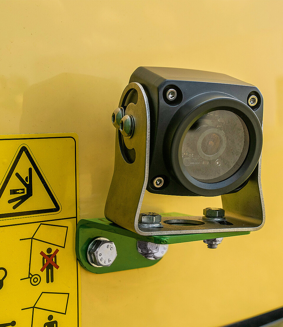 Für alle EasyCut F Frontmähwerke ohne Weistedreieck ist optional ein DLG-zertifiziertes Kamerasystem erhältlich. Unübersichtliche Verkehrssituationen kann der Fahrer dank eines geteilten Bildschirms schneller überblicken. Somit sind zum Beispiel enge Feldausfahrten auch ohne Einweiser keine Gefahr mehr. im Lieferumfang enthalten sind zwei Kameras und alle benötigten Kabel sowie ein Monitor.