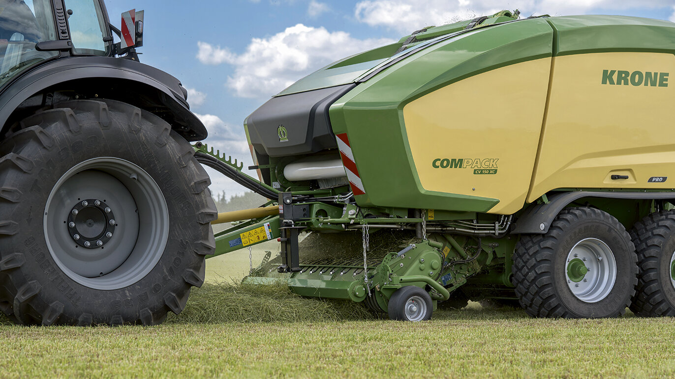 Постоянная стабильность в самых жестких условиях длительной эксплуатации и высокая универсальность — так KRONE ComPack V и CV Pro задают новые стандарты. У этих машин диаметр рулона бесступенчато устанавливается в диапазоне от 1,00 до 1,50 м и давление прессования регулируется электронной системой из кабины в зависимости от прессуемого материала и условий эксплуатации.