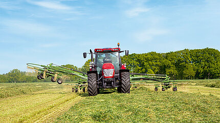 Шпелле, сентябрь 2023: четырехроторный валкователь Swadro TC 1250 с вариабельной рабочей шириной от 9,80 до 12,50 метров уже давно отлично…