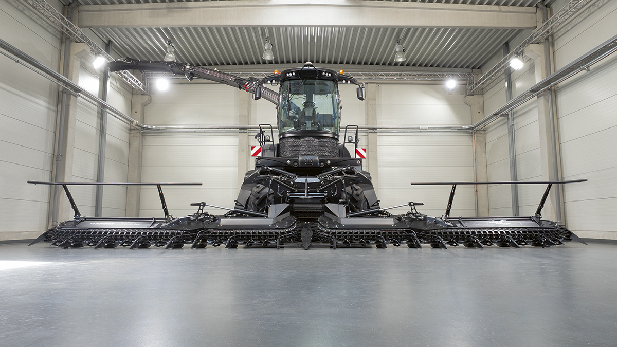 На выставке Agritechnica 2025 компания KRONE демонстрирует BiG X с черным лаковым покрытием — специальную модель с приставкой для уборки кукурузы XCollect с рабочей шириной 12 м как олицетворение инновативности и мощи.