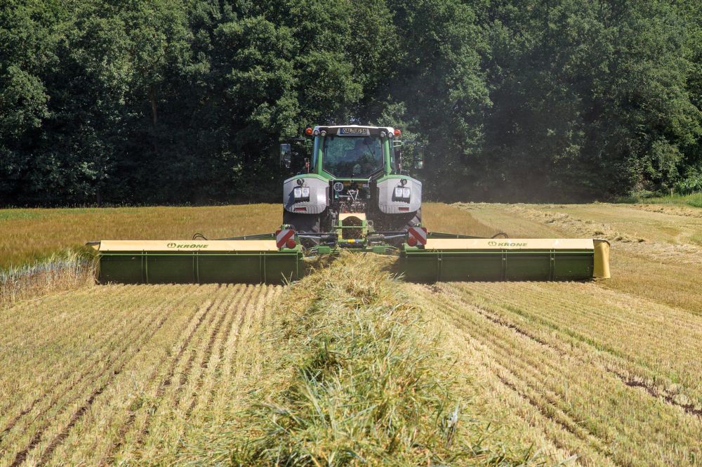 Шпелле, в ноябре 2017 года – Компания Krone впервые представляет на выставке «Агритехника» новую комбинацию косилок – «бабочку», EasyCut B 950 Collect с укладкой массы в один валок посредством поперечных подающих шнеков, но без плющилки. Отказ от плющилки позволил значительно уменьшить вес машины, а также потребность мощности трактора и тем самым снизить расход топлива. Таким образом, новая EasyCut B 950 Collect с шириной захвата от 9,45 м, подходит в частности для работы в травостое на склонах и на почвах с малой несущей способностью, но также для эксплуатации на полях при заготовке зерностебельной массы (предприятия, обслуживающие биогазовые установки). Здесь целью являются незначительные потери кормовой массы и сохранение корма при соединении валков. В зависимости от убираемой культуры и условий эксплуатации EasyCut B 950 Collect может достигать производительности в единицах площади до 14 га в час. При разработке машины компания Krone использовала, впрочем, свой многолетний ноу-хау из линейки Big M; высокопроизводительная косилка-плющилка также поставляется с поперечными подающими шнеками.