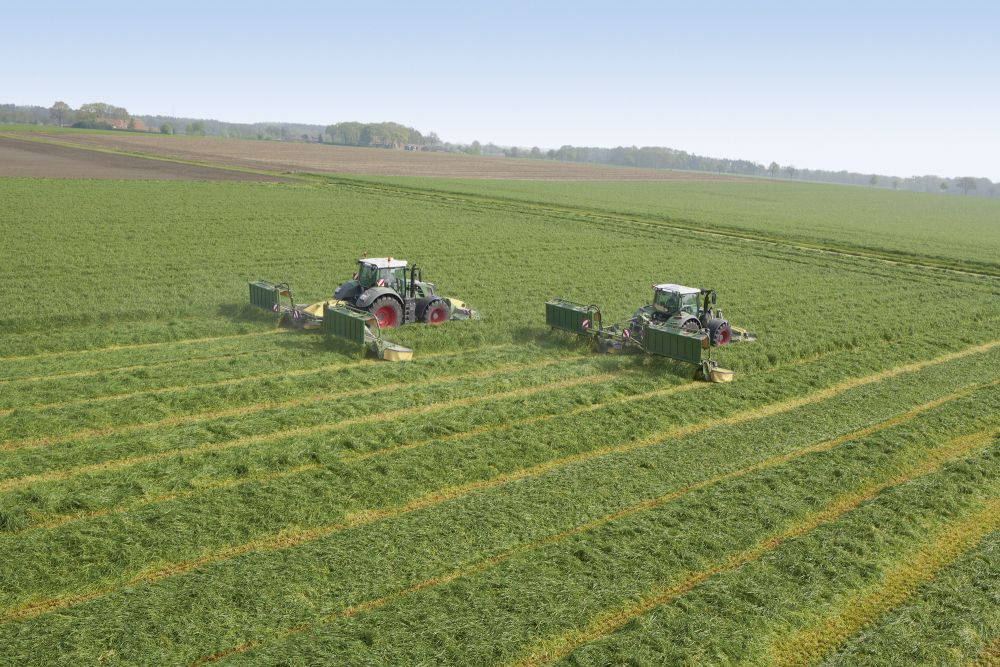 Krone демонстрирует на практике одновременно три новые модели EasyCut: фронтальную косилку EasyCut F 360 CR (рабочая ширина захвата 3,60 м) в комбинации с новым EasyCut B 1000 CR Collect (рабочая ширина захвата от 9,30 м до 10,10 м), а также EasyCut B 870 CV Collect (рабочая ширина захвата 8,70 м). Сокращение CR означает оснащение вальцевой плющилкой, а сокращение CV - плющилкой со стальными битерами. Дизайн и внутренние механизмы новых косилок компания Krone привела в соответствие с существующими условиями: так косилочные секции располагают «обтекаемым» дизайном и гладкой поверхностью во избежание налипания массы. Если рассматривать внутренние механизмы, то тут Krone делает ставку на многократно проверенный косилочный брус EasyCut с оптимизированным расстоянием между дисками (SmartCut). Этот цельносварной косилочный брус со смазкой на весь срок эксплуатации обеспечивает стабильность, долгосрочность и простоту технического обслуживания. Устройство защиты косилочного бруса SafeCut для максимальной безопасности устанавливается серийно на всех моделях. Как фронтальная косилка EasyCut F 360 CR, так и триплексная комбинация косилок B 1000 CR, оснащены полиуретановыми вальцевыми плющилками. Полиуретановые вальцы имеют диаметр 25 см и работают с постоянным давлением для интенсивной обработки сильно облиственных культур. Привод вальцевой плющилки осуществляется с силовым замыканием через редуктор и нижний валец; привод верхнего вальца является опцией. EasyCut B 1000 CR имеет к тому же механизм снятия нагрузки Combi Float с интеграцией гидравлики трактора для автоматической подрегулировки опорного давления на неровной местности. Комфорт и эффективность объединяет в себе поперечный ленточный транспортер „Collect“ шириной 910 мм и собственное «бортовое» снабжение маслом; водитель может самостоятельно выставлять скорость транспортера, что позволяет производить гибкое формирование валка. В качестве опции можно приобрести ускорительные вальцы формирования валка с дополнительной регулировкой высоты. Новая плющилка с V-образными стальными битерами При проектировании EasyCut B 870 CV компания Krone ориентировалась на старшего брата EasyCut B 1000 CV. Ширина захвата каждой косилочной секции составляет 3,16 м; в комбинации с фронтальной косилкой общая ширина захвата составляет 8,70 м. Наряду со стандартными полозьями компания Krone предлагает для данной косилки также дополнительные плоскости увеличения высоты среза по запросу. Их применение рекомендуется в частности в каменистых полях или при частой перемене от скашивания на кормовых угодьях к уборке кормовой ржи. Для равномерного опорного давления имеется запатентованный балансир с разгрузочными пружинами. Гидравлические цилиндры двустороннего действия надежно управляют процессом подъема и опускания косилок – даже на склонах. На высокую производительность рассчитана также новая плющилка с V-образными стальными битерами, диаметром 64 см и ступенчатым редуктором (600/900 мин-1). Зубья с агрессивным углом атаки направляют кормовую массу равномерным потоком по всей рабочей ширине захвата; так гарантируется превосходная подготовка корма и ускоренное подвяливание массы. Семиступенчатая безинструментальная настройка щитка обеспечивает оптимальную регулировку интенсивности обработки корма. EasyCut B 870 CV Collect подкупает поперечным транспортером шириной 910 мм, который без пробле