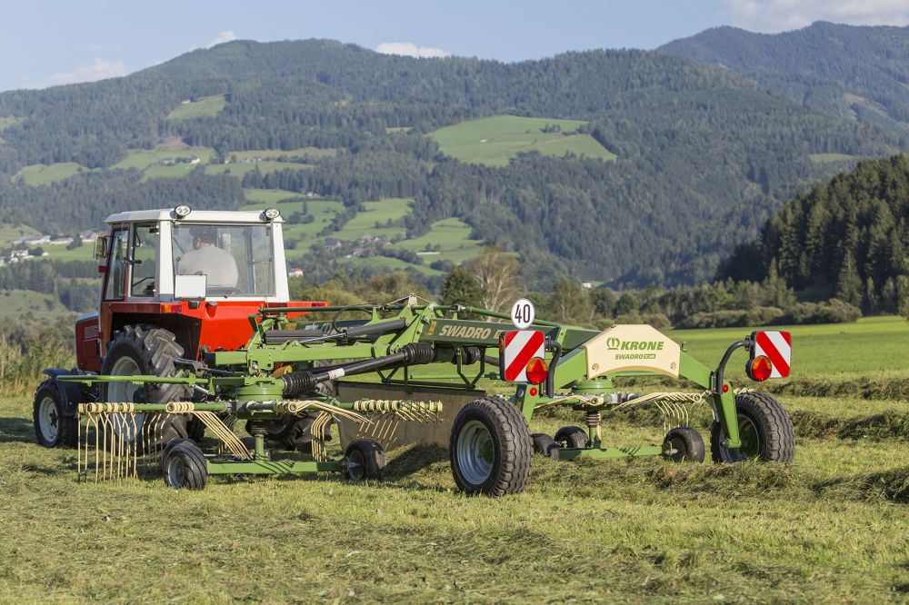 На выставке ZLF в Мюнхене Krone продемонстрировала сразу три новых валкователя, дополнив свой ассортимент валкователей с центральной укладкой валка типами Swadro TC 640, Swadro TC 930 и Swadro TC 1000. С Swadro TC 640 Krone предлагает интересную базовую модель с рабочей шириной от 5,7 м до 6,4 м и шириной валка от 1,0 м до 1,7 м. Для большей производительности идеально подходят Swadro TC 930 (рабочая ширина от 8,1 м до 9,3 м) и Swadro TC 1000 (рабочая ширина от 8,9 м до 10,0 м).
